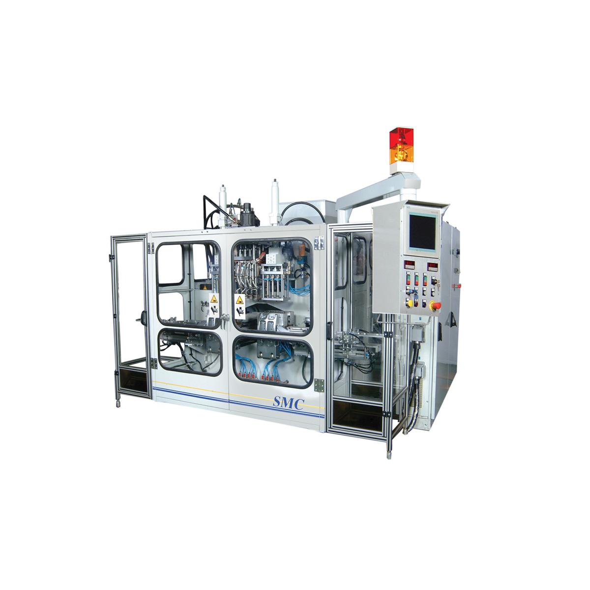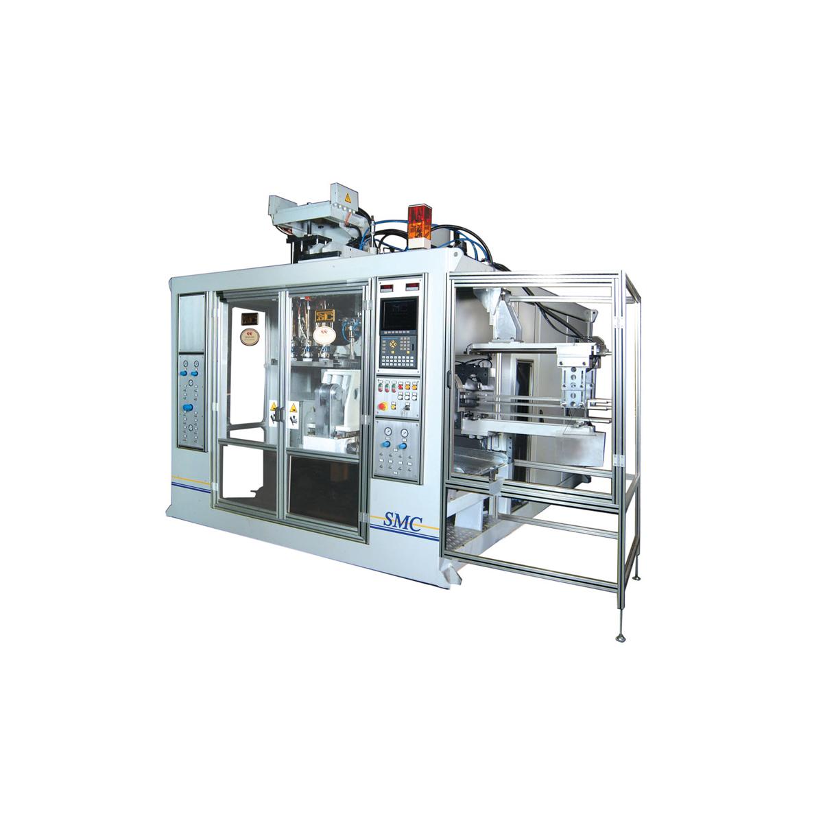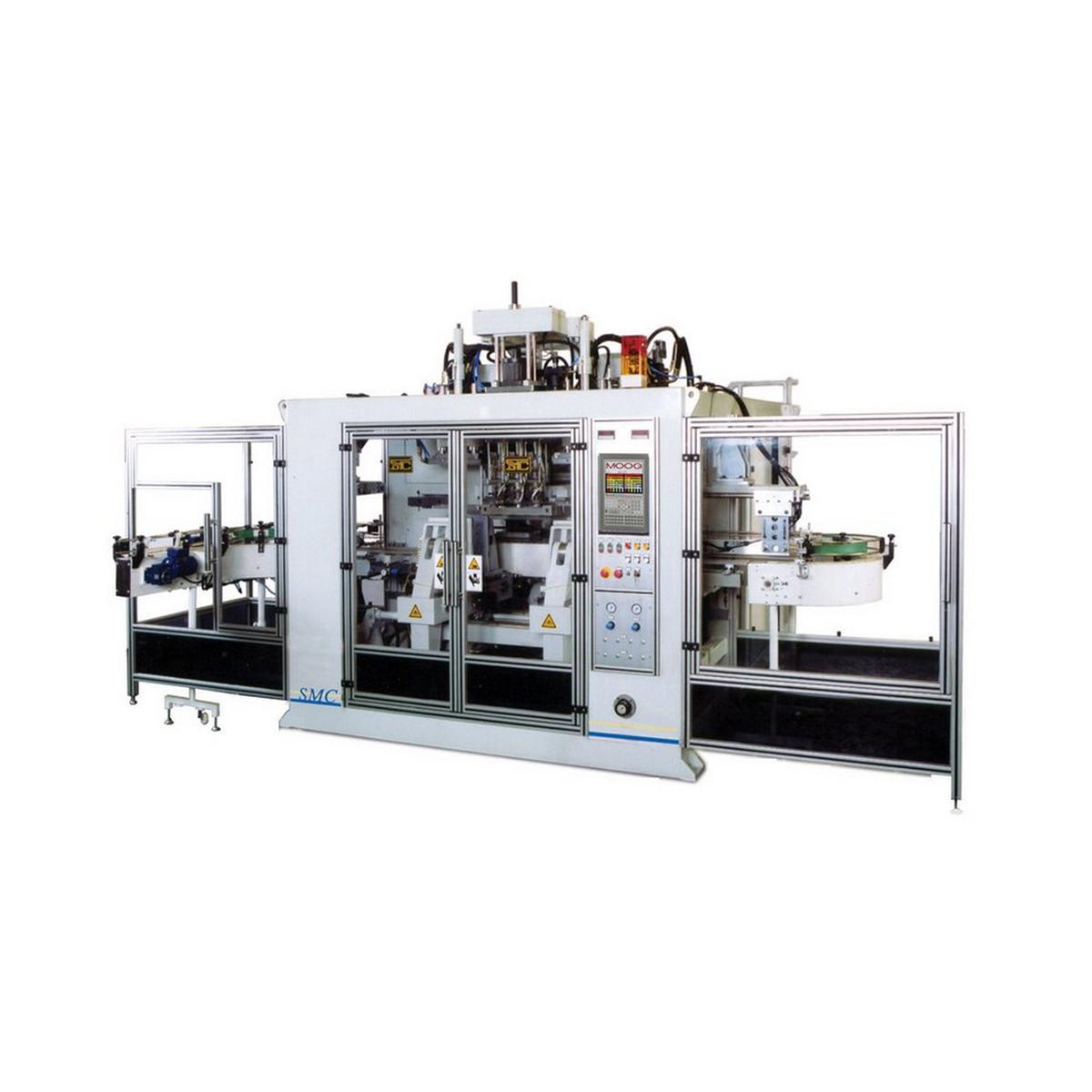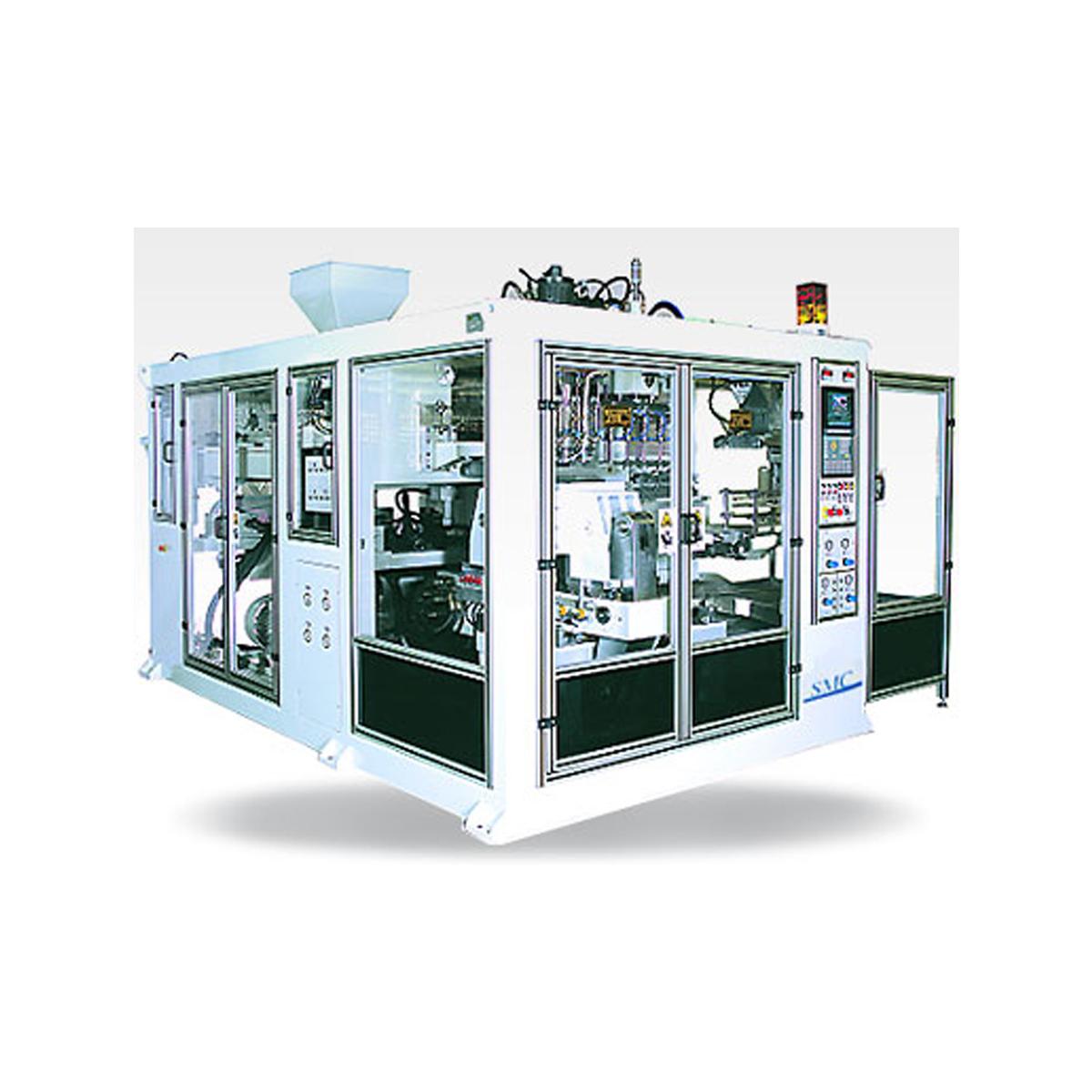 Линейный ход узла смыкания и каретки по направляющим рельсам с управлением перемещения клапанов пропорционального действия. Высококлассная машина для массового производства изделий среднего размера от 1 литра до 10 литров.