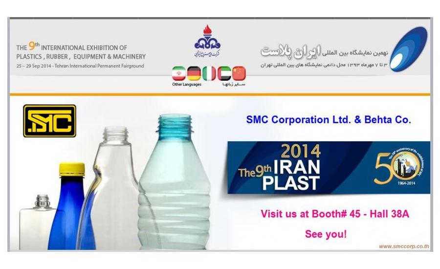 This year, SMC Corporation Ltd. together with its Iranian agent, Behta Co. are participating the exhibition.  We will showcase the SMC-3000TC Extrusion Blow Molding machine in Hall 38A – Booth # 45 on September 25 – 29, 2014.